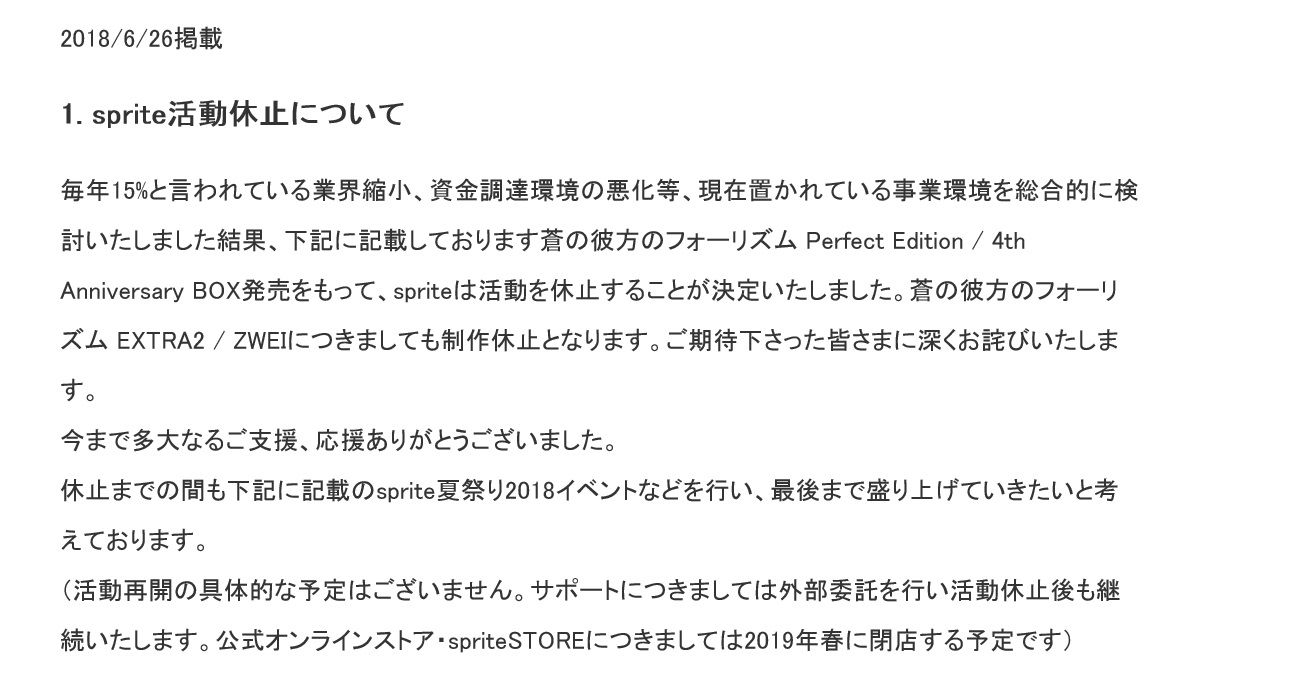 そしてもう一つはエロゲメーカーspriteの活動休止です。